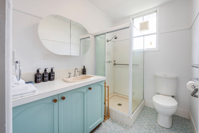 Ideal for families, couples, or small groups of friends, the property features bright, inviting interiors with playful pops of colour and mid-century details throughout. Two comfortable lounge rooms offer plenty of space for everyone to unwind – whether that’s watching a film, reading a book, or enjoying a quiet moment after a day at the beach. The well-equipped kitchen and dining area make mealtimes easy and enjoyable.
